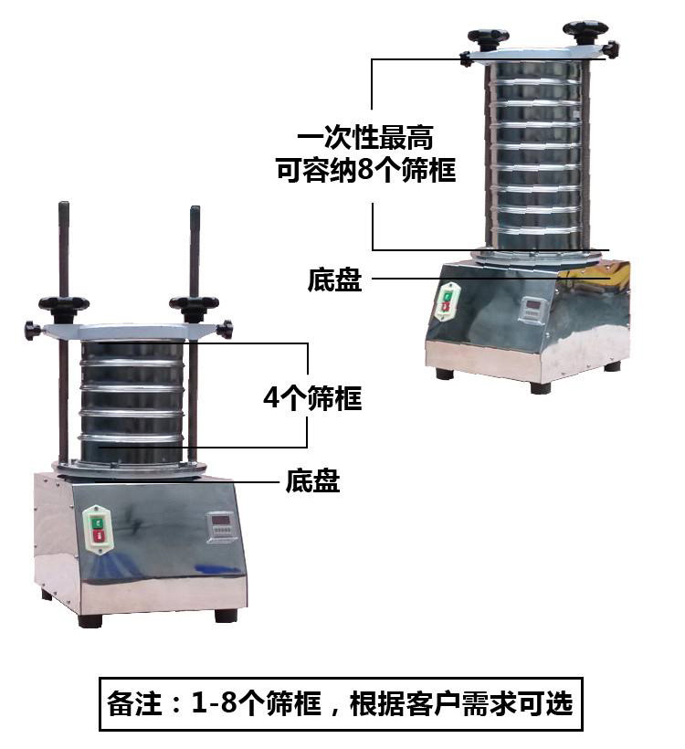 檢驗篩是科研生產、試驗室、質檢室用來確定物料篩孔(目數)的小型篩分設備,該設備廣泛用于冶金、粉粒、化工、醫藥、建材、地質、國防,也可以叫做試驗篩、實驗篩、分析篩、藥典篩。結構緊湊,工作噪音低、篩分效率高、精度高,采用優質動力發生器,產生多元高頻振動帶動篩機工作,可對多種物料進行測定、篩分,其振動體和篩框可分開報價。